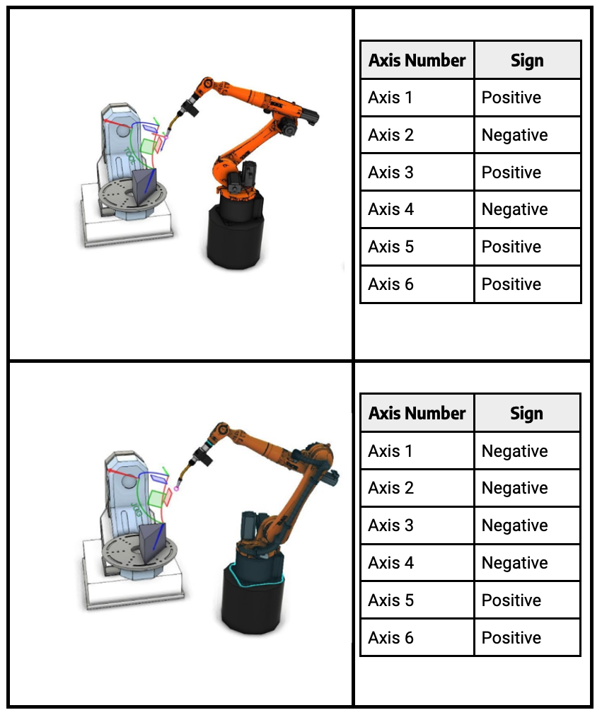 La secuencia que siguen las rotaciones A, B y C es esencial. Los robots ABB usan la convención móvil ZYX Euler, mientras que FANUC y Kuka usan la convención de ángulo Euler XYZ fijo. Stäubli y Kawasaki utilizan la convención ZYZ.